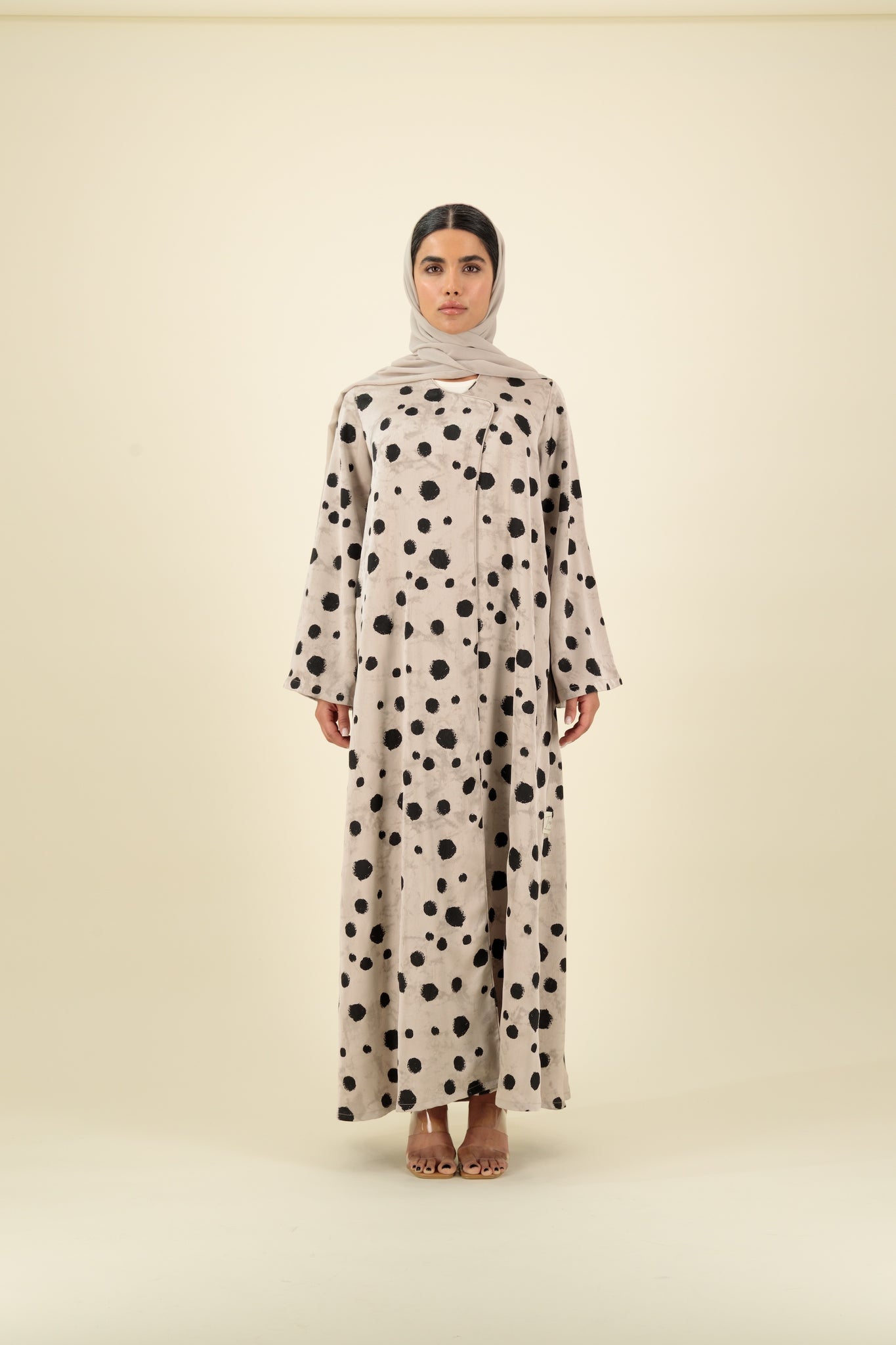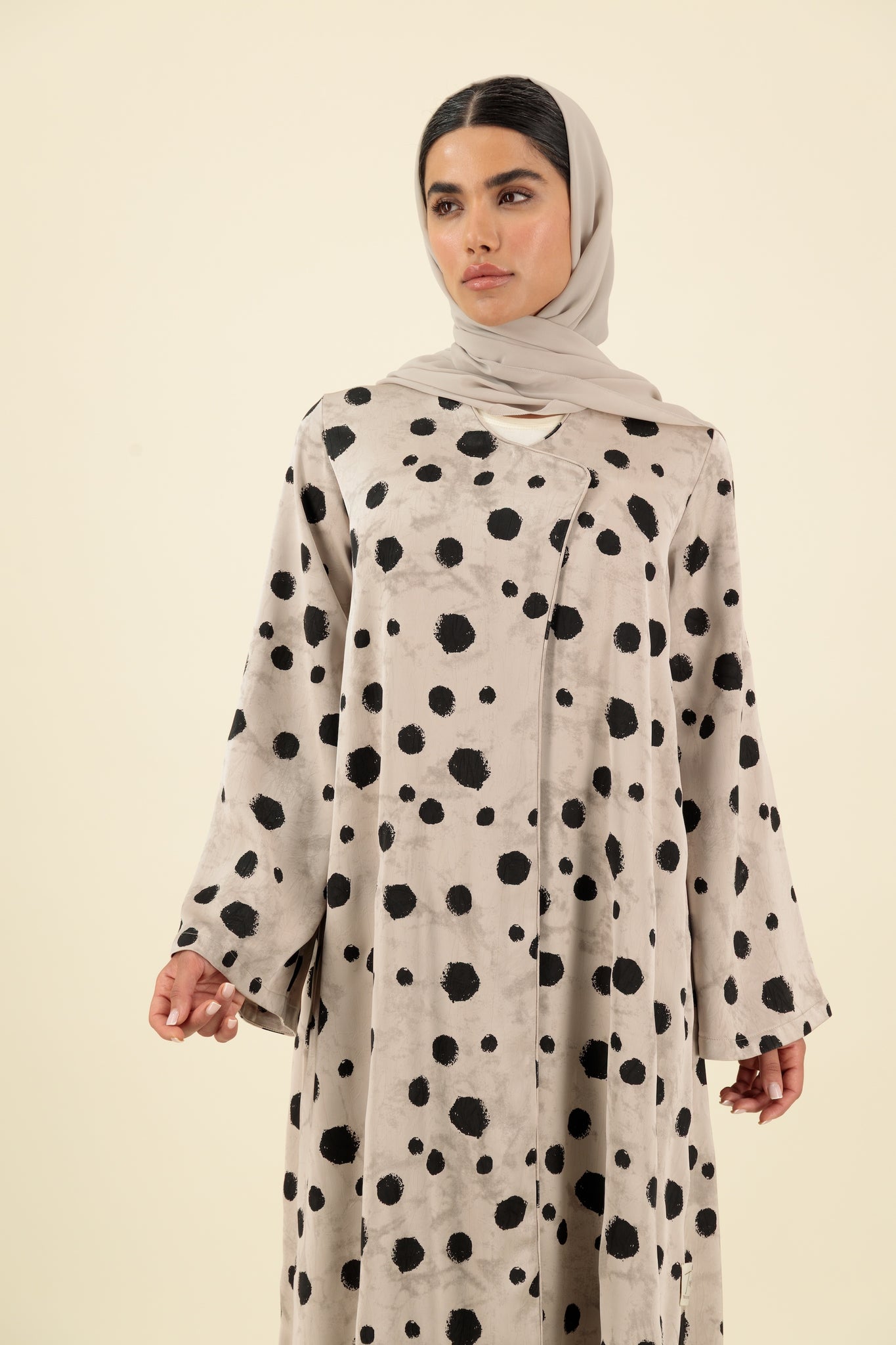 Discover the elegance of our G07 piece, crafted from luxurious silk fabric adorned with a trending polka dot pattern. Perfect for anyone wanting to elevate their wardrobe with a refined yet modern statement.